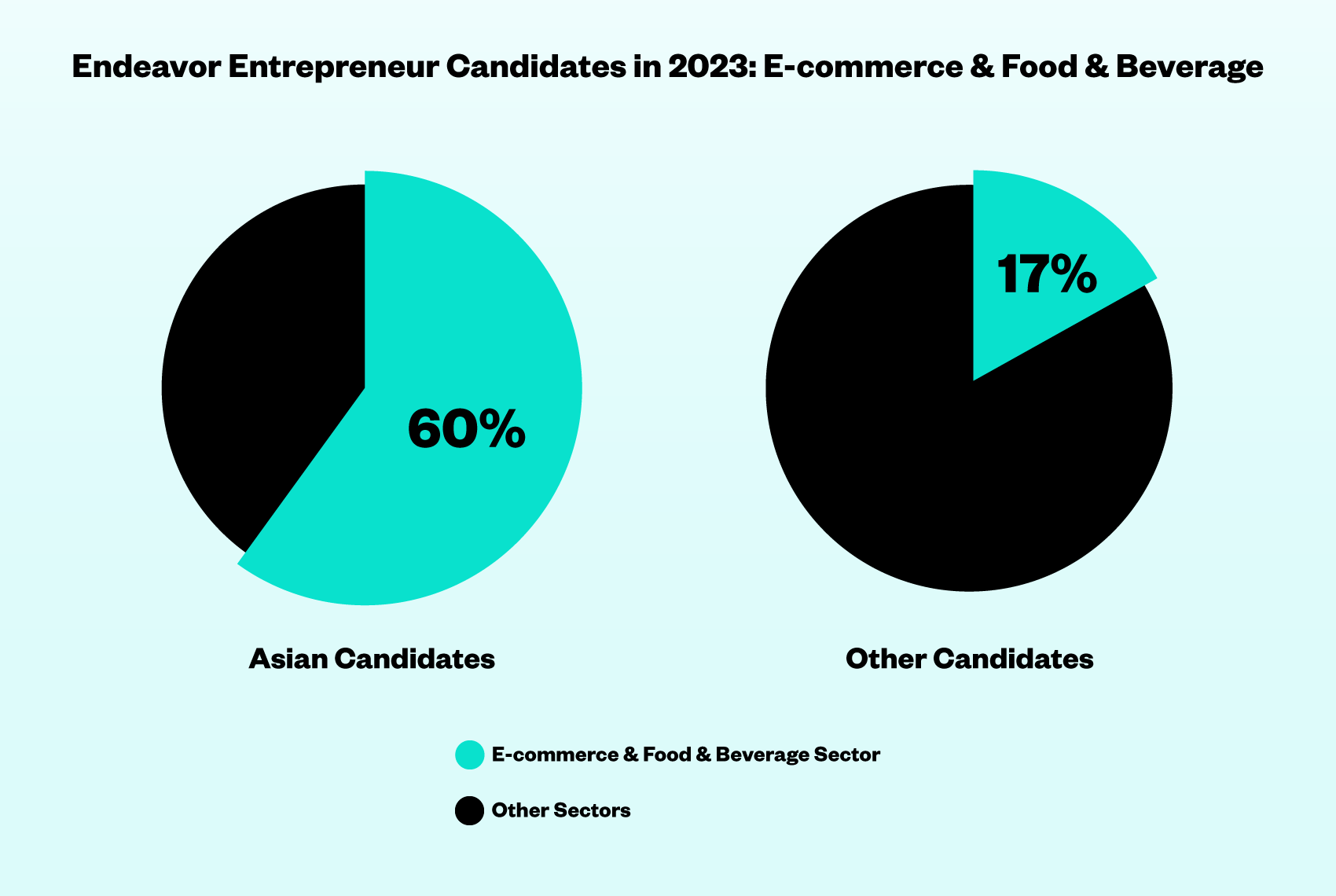 At Endeavor we’ve seen this reflected in the applicant pool for Endeavor Entrepreneurs: 77% of the companies selected from Asia in 2023 were consumer-facing. Almost 60% of all Asian candidates at our International Selection Panels last year were in the e-commerce or food & beverage sectors, compared to 17% of companies in these sectors from the rest of the world.
