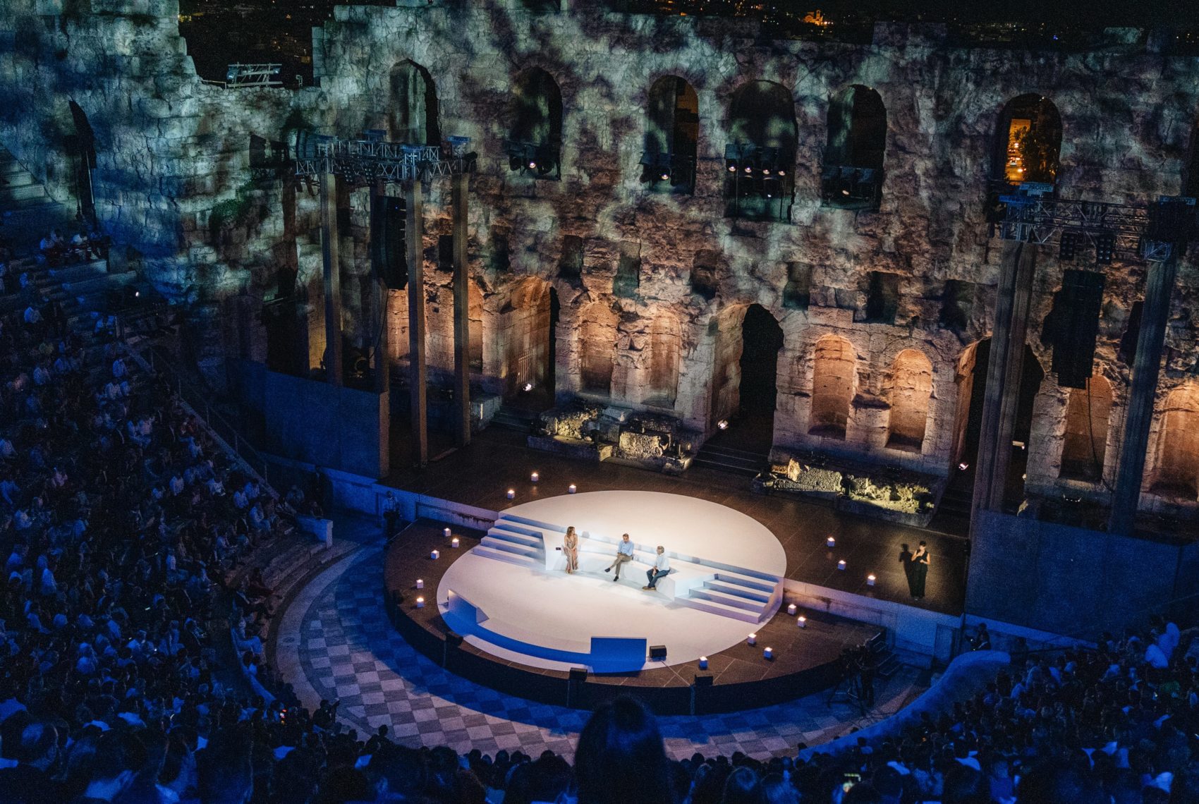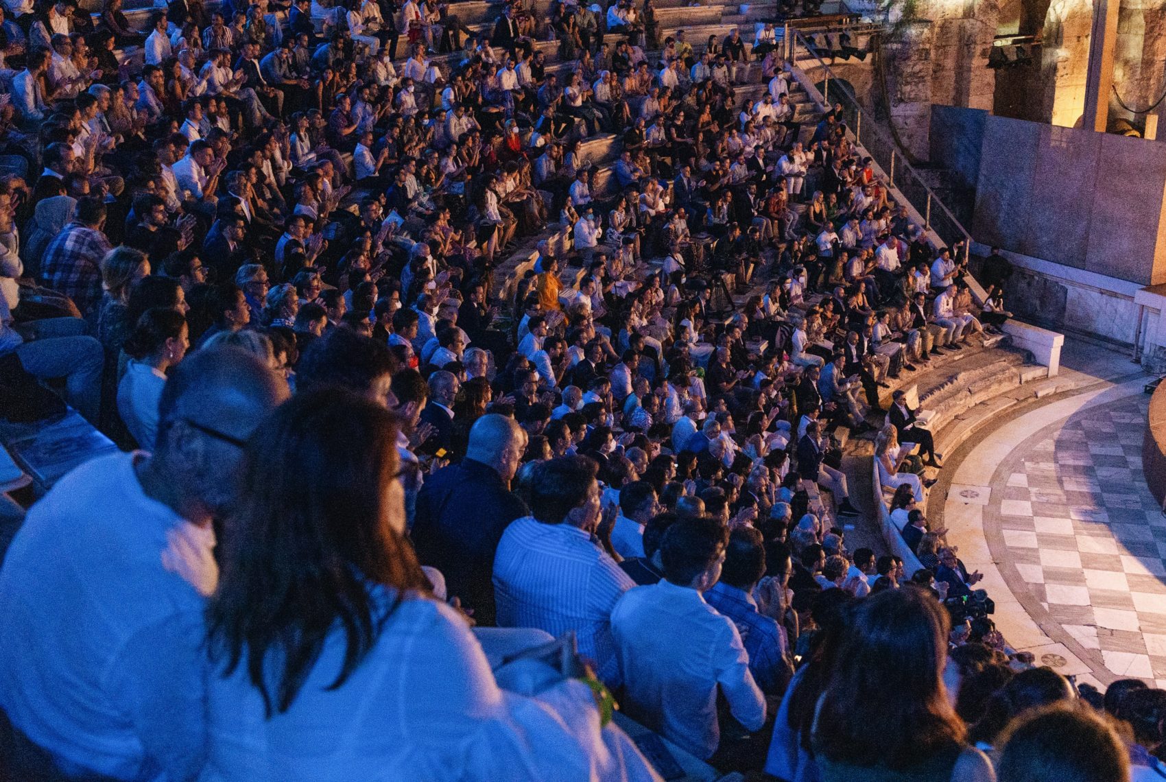 So this is obviously a very special place in the shadow of the Acropolis, a theater that was built essentially 2000 years ago. It was actually covered at the time it was built. Not many people know that. Ιt had a wooden roof but it is one of the most special places where one can perform. And one should not forget, – as we have also Ted in our company – that the performing arts were essentially born right around the corner in the ancient theater under the Acropolis when ancient Greeks for the first time experimented with theater as a form of entertainment but also as a form of self reflection for a society that ended up being the first democratic society ever in history. So I could not imagine a better place to be. And I’m sure that our guests, especially those who visit us from abroad, will enjoy this evening.