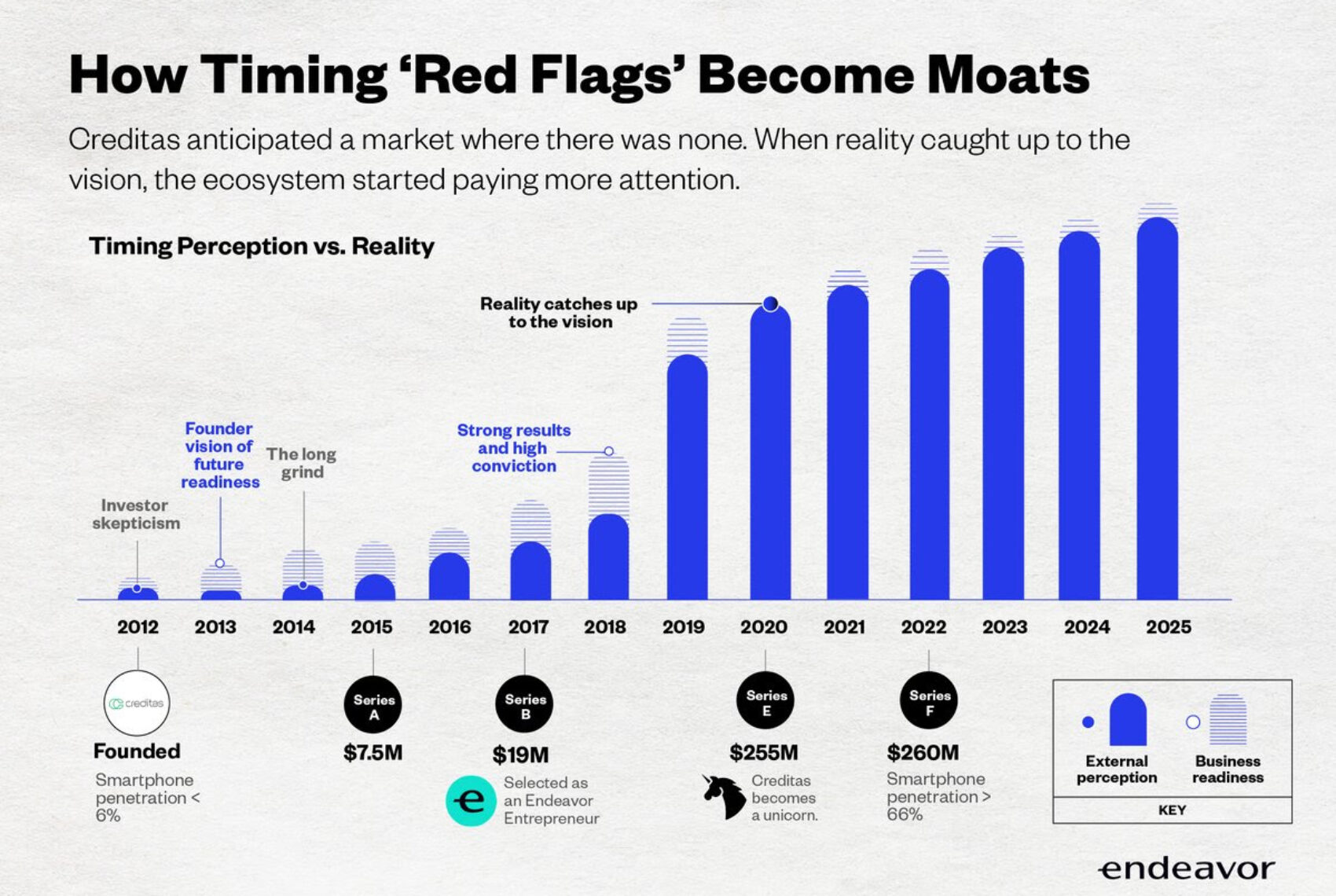 When Sergio Furio decided to move to Brazil in 2012, the country lacked not only a startup ecosystem, but also a market. Creditas was built as a platform to deliver the cheapest financing a person could get — but the middle class wasn’t even online then. In fact, smartphone penetration was less than 6%. “It was completely against the odds”, he said. No one wanted to invest in their seed round. “And it took me four years to get to our $7.5M Series A round”, Sergio noted. But between 2019 and 2021, the company raised almost $800M in total. They anticipated that smartphone penetration would reach 60-70% soon. And it did. They predicted that the incumbents’ profitability would keep them from pivoting. And it did. Eventually, reality caught up to the vision. Now making over $400M in revenue, Creditas proved that the biggest winners often look “wrong” at the start: they may emerge in markets considered too small or “not ready,” build products that don’t match dominant tech narratives, or adopt go-to-market strategies unfamiliar to global investors. |