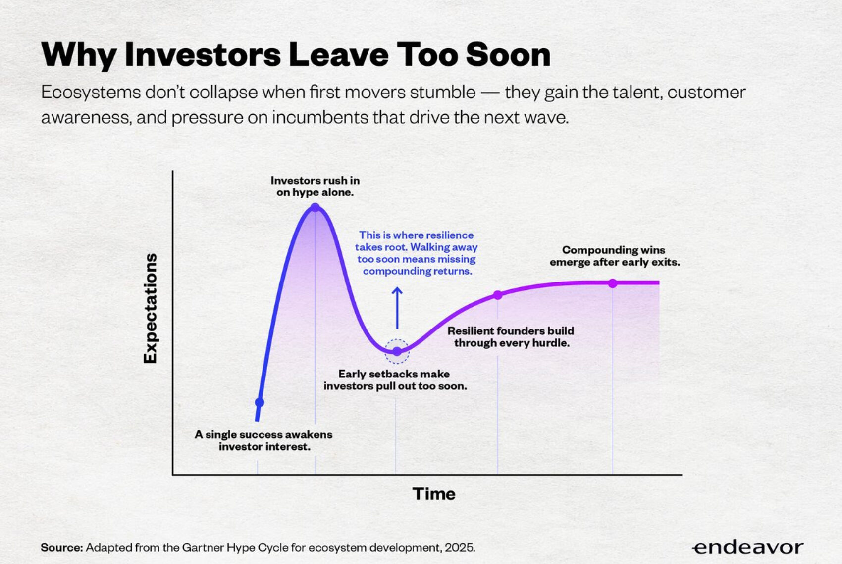 The next wave of companies often succeeds precisely because the first ones took the hits. By leaving too soon, investors miss the compounding effect of those initial attempts.