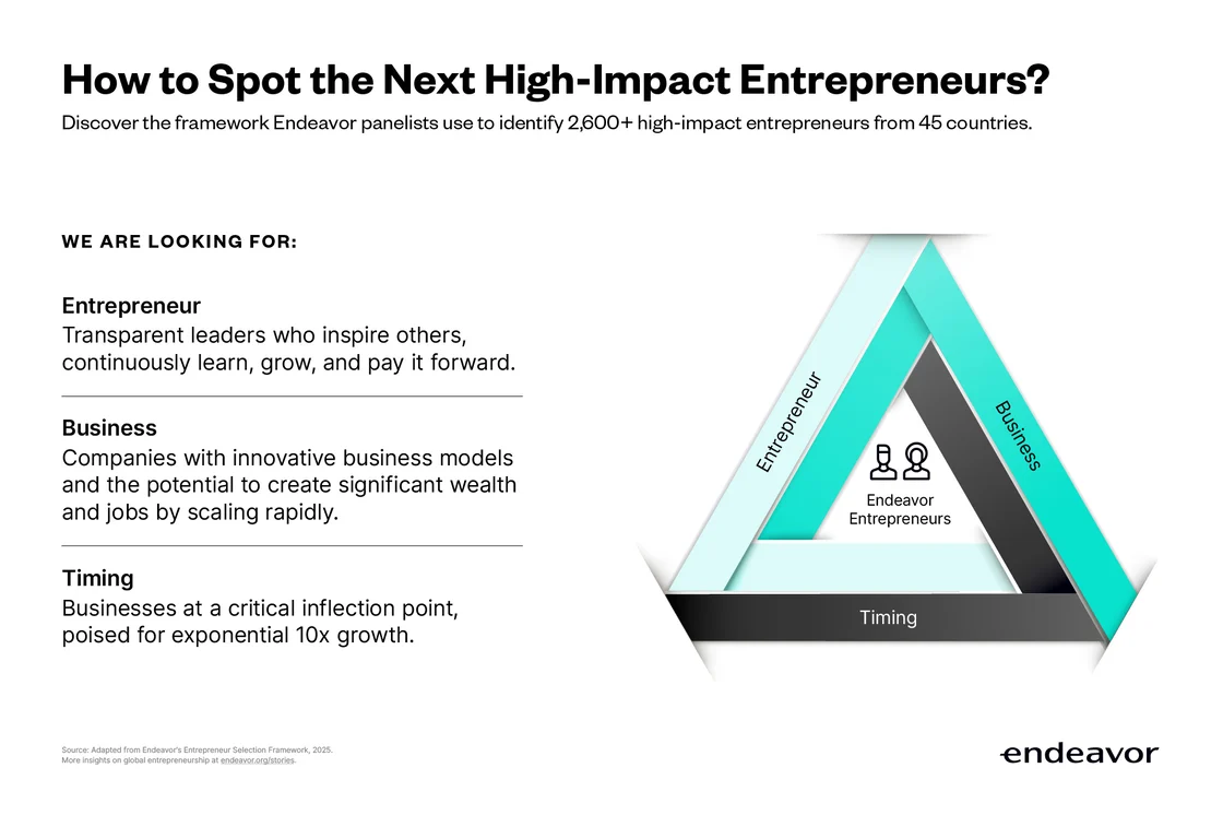 Put the right entrepreneur in the right community at the right time, and you spark not only business growth, but a global movement. Month after month, we select high-impact founders from all over the world to make this movement stronger. Meet the most recent Endeavor Entrepreneurs here.